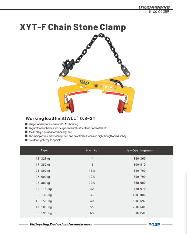 Our heavy-duty F-type stone lifting clamp, made of high-strength alloy steel, safely lifts marble, granite, and curbstones. With self-locking scissor design, non-slip rubber pads, and adjustable jaws, it ensures zero slippage, protects stone surfaces, and boosts handling efficiency. Ideal for construction, stone yards, and landscaping, a cost-effective, reliable lifting solution.
